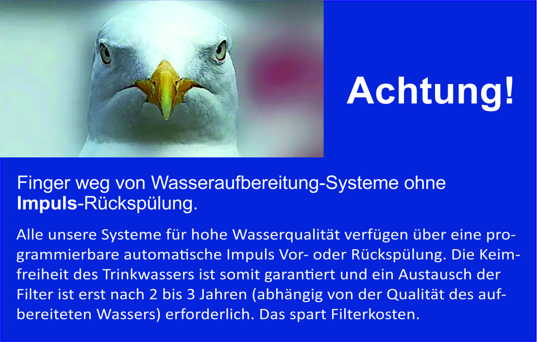 Schon nur aus diesem Grund unterscheiden wir heute unser Trink- von Verbrauchswasser. Mit dem Gedanken, dass wir mit demselben Wasser auch die Toilettenspülung einsetzen, können und wollen wir uns auch nicht mehr abfinden. Wir übernehmen auf Wunsch für unsere Kunden, gegen Aufpreis vor der Installation der Geräte, eine Wasseranalyse. Denn fast jede 4. Wasseranalyse ist heute belastet! Wissenschaftlich getestet und mehrfach bewiesen, dass unser Hauswasser Nachholbedarf hat. (Siehe Analysebericht von Biolytix, einer unserer Partner Labore).